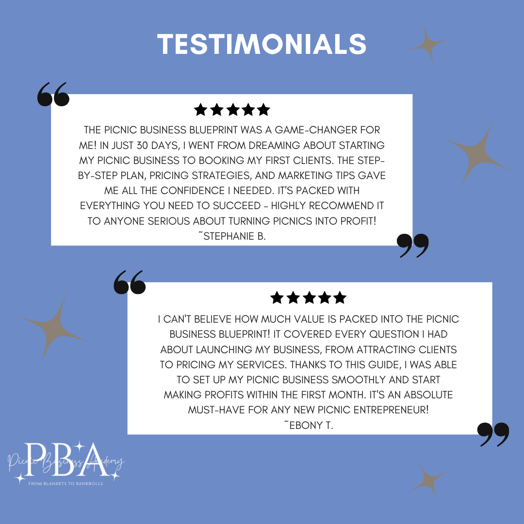 Dreaming of starting your own luxury picnic business but don’t know where to begin? Or maybe you’ve launched but need a clear roadmap to scale your bookings and revenue? The Picnic Business Blueprint is your all-in-one guide to building, growing, and thriving in the booming picnic industry.